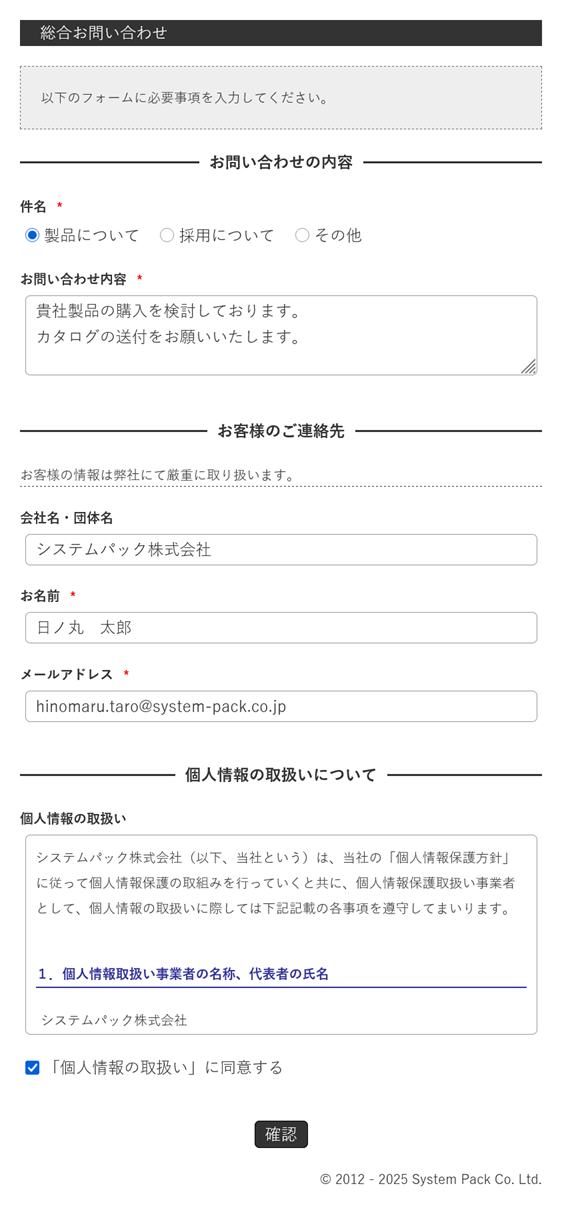 標準設定ではフォームの送信前に確認画面が表示されます。
